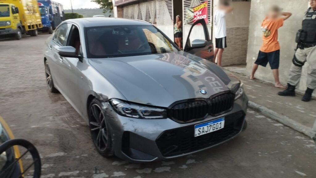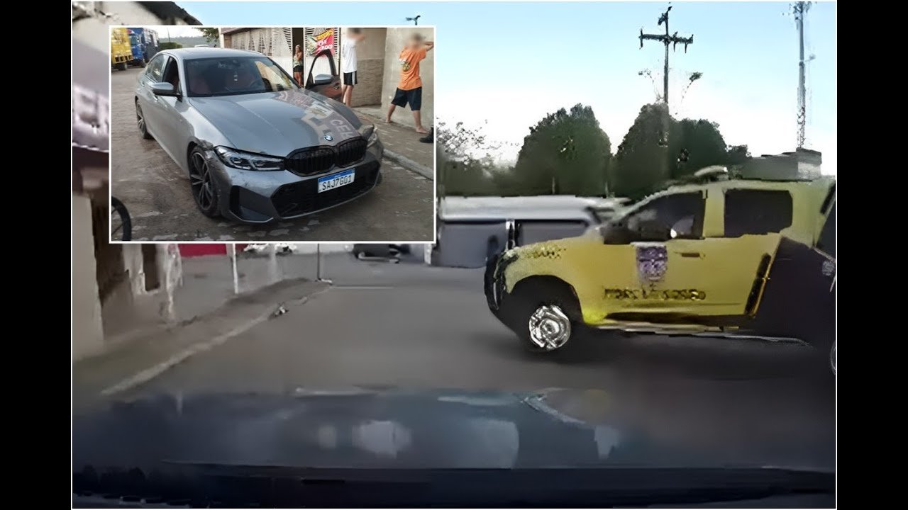 Reveja: Menor guiando BMW avaliada em mais de R$ 360 mil bate em viatura da PM ao dar cavalo de pau em São Miguel dos Campos