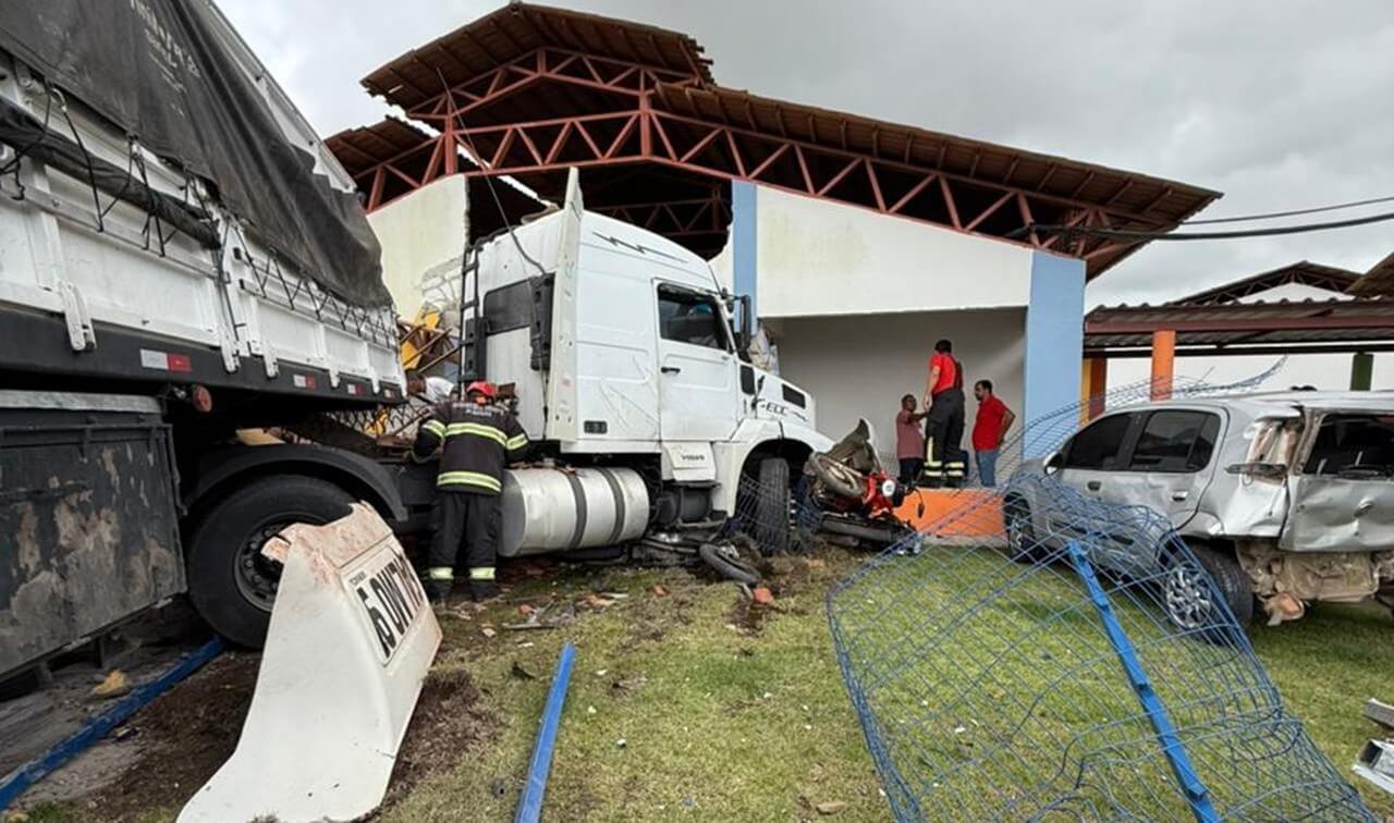 Um vídeo que circulou nas redes sociais nesta quarta-feira, dia 1º, mostra o exato momento em que uma carreta perde o controle ao passar por uma lombada e colide violentamente contra a estrutura de uma escola, localizada na rodovia estadual AL 110, em São Sebastião, no interior de Alagoas.